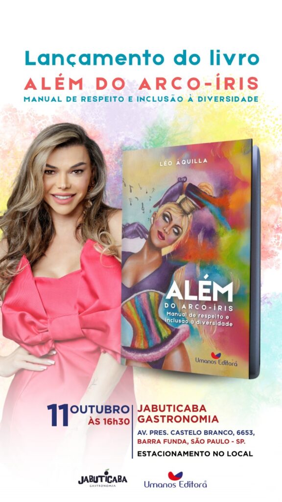 A jornalista e palestrante Léo Áquilla lança no próximo sábado, 11 de outubro, seu mais novo livro: “Além do Arco-Íris – Manual de Respeito e Inclusão à Diversidade”. O evento acontece a partir das 16h30, no Jabuticaba Gastronomia, em São Paulo.