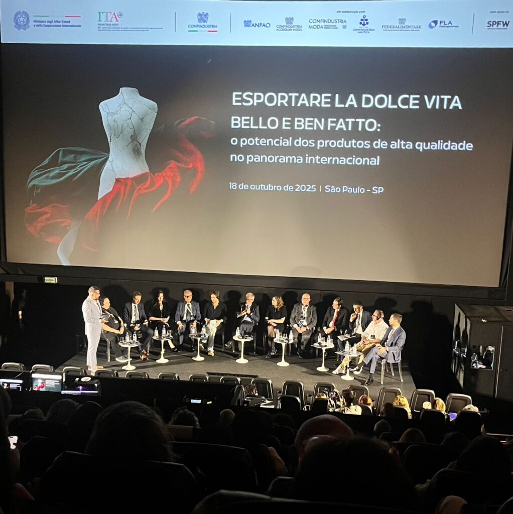 No dia 18 de outubro, o Shopping Iguatemi, em São Paulo, foi palco do talk show “Esportare la Dolce Vita – Bello e Ben Fatto”, um encontro que reuniu grandes nomes do setor para discutir qualidade, tempo de produção e o potencial global dos bens de consumo de alto padrão, como moda, design, gastronomia, náutica e acessórios.